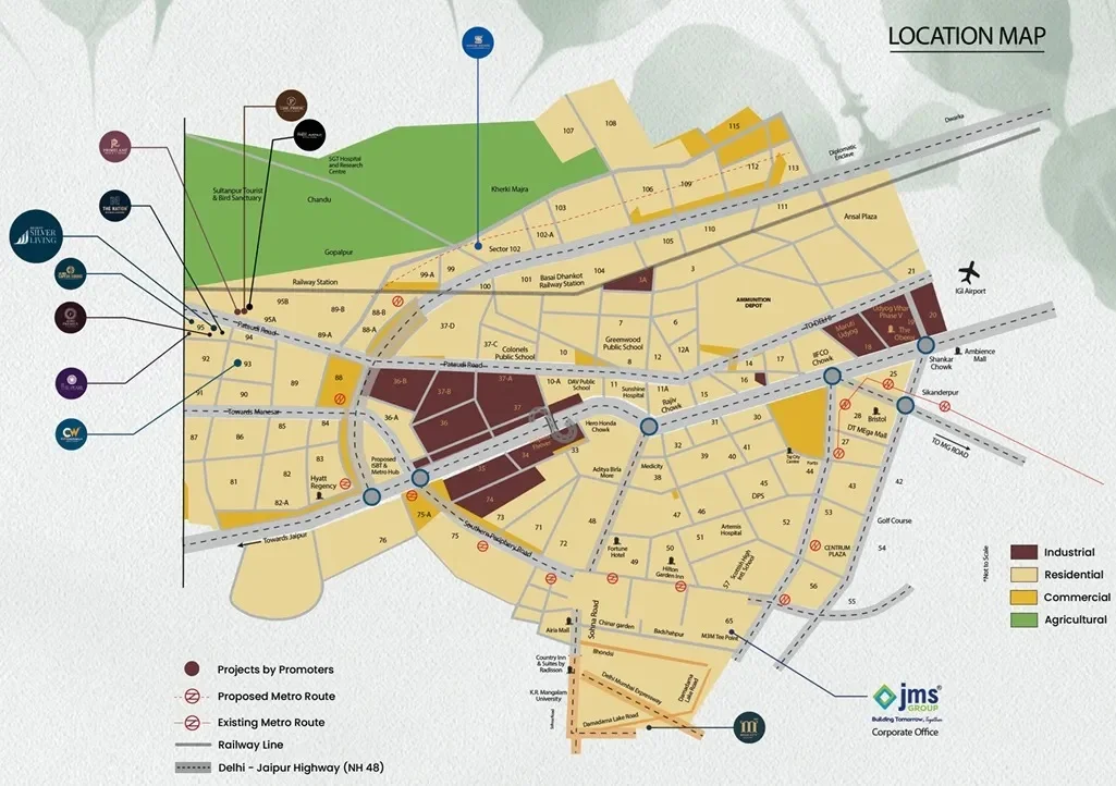 - Close to top residential & commercial projects by Raheja, DLF, Sare, Ansal & Spaze