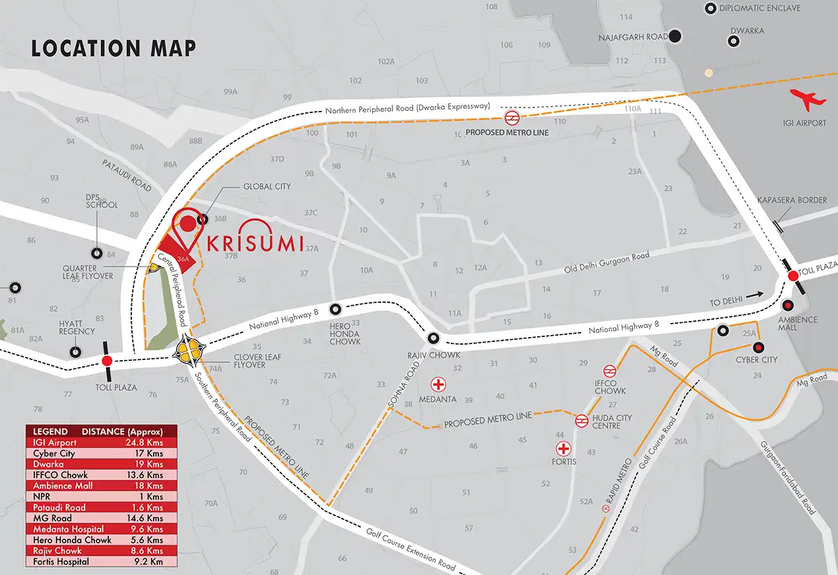- Medanta The Medicity – Approx. 9.6 km